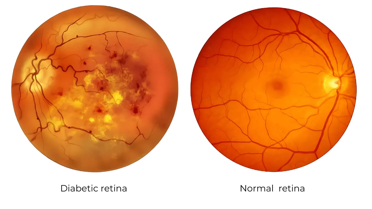 India is the country with the highest incidence of diabetes in the world. Diabetes is closely linked to eye problems and is capable of causing blindness. Hence timely diagnosis and treatment is essential. It is strongly recommended that diabetic patients have their eyes checked up regularly once in every six months or as advised by the ophthalmologist. Diabetic retinopathy is the broader term which collectively refers to all diseases of the retina caused by diabetes. The retinal damages may include macular degeneration, retinal detachments, bleeding of the eye, macular holes, retinitis pigmentosa, etc.