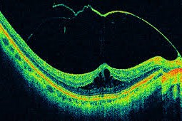 OCT uses light waves to take cross-section pictures of retina’s distinctive layers. This helps to map/ measure the thickness of retinal layers and in turn helps diagnose the severity and nature of damage in retina.